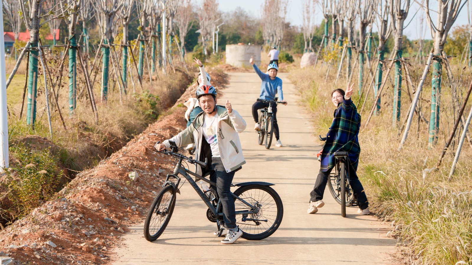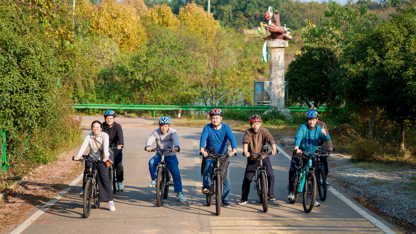 骑行队伍时而加速前进,时而驻足拍照,风声、笑声、车轮声交织成一首快乐协奏曲,工作中的紧绷感在这一刻随风而逝。